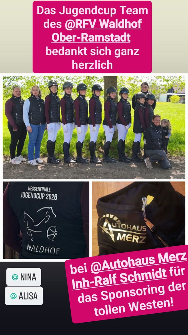 Ein großes Dankeschön an unseren Sponsor "Autohaus Merz, Mühltal", das uns für das Finale mit den tollen Vereinswesten ausgestattet hat!